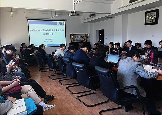 首先发言的国家级教学名师李健老师就“立德树人”的具体内涵进行了阐述。她结合自己的求学生涯和育人过程强调了导师在硕士生培养过程中的责任和担当。李老师表示,硕士生培养不仅要重视专业能力,更要把人的全面发展作为高等教育的终极目标,对学生进行人格塑造,帮助学生在浮躁的社会风气中守护精神家园,坚持读书人的情怀与追求。随后,杜惠芬老师指出在有限的课堂学习阶段要严格学生实习管理,提醒学生珍惜读书良机,沉下来提高自己的综合素质。陈颖老师建议学院就学生实习作出统一安排,在重视专硕管理的同时关注学硕的科研需求。黄瑜琴老师特别就案例教学中的教师主导和学生自主谈了自己的经验,她坚持从具体写作文法上督促学生持续改进和练习,将学生案例作品与业界充分交流并及时反馈学生。黄志刚老师认为,学术研究和讨论在硕士生学习中常常被忽视,思维方法和能力的训练还不足。他强调要结合学生在校的阶段性特点提高学生的学术科研积极性,鼓励学生参与院内外的学术活动,调动学生研究热情。王汀汀老师表示硕士生对导师有着较高的期待,导师应该坚持有教无类的原则,促进学生个性化发展。谭小芬老师提出将“育人”和“育才”结合起来,学生成才当下很重要,“成人”将来更重要。他强调要在培养过程中将工具、专业知识和人文知识结合起来,关注学生成长的增加值,从学生兴趣出发,培养学生从比较简单的问题入手,提高学生的研究能力。张学勇老师分享了在硕士研究生培养过程中总结出来的导师以身作则同时引导学生努力做到“三强一严”的经验;“三强”即“责任心强、业务能力强、理想信念强”,“一严”即严格要求。张老师强调导师要用心、用情、用功,他指出导师的让步就是学生的退步,导师必须规范学术训练,从研究前沿和中国实践出发为每位同学提供个性化培养方案设计。韩复龄老师从自己的教育经验出发,强调导师要把握社会发展和金融行业发展的特点,结合学生个人情况量体裁衣,制定学生职业发展规划。