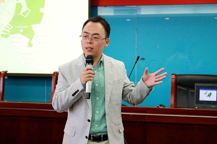 付俊伟副教授对蒂尔堡市和蒂尔堡大学的基本情况作了详细介绍。他提到,蒂尔堡大学由6个学院组成,有来自100多个国家的12399名学生在这里学习。根据2016-2017年泰晤士高等教育(THE)专业排名,蒂尔堡大学经济学与商科位列全球第 11 位,欧洲第三位。为了让大家进一步了解蒂尔堡大学,付老师还和大家分享了蒂尔堡大学的宣传片和宣传册。