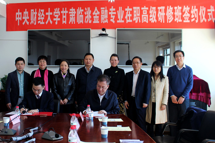 随后进行了浦京集团官网甘肃临洮金融专业在职高级研修班的协议签约仪式,浦京集团官网院长李建军教授和中共临洮县委书记石琳分别在协议上签字。