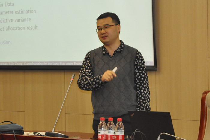 陈锐助理教授的演讲主题是“外汇与债券市场期限结构”,他从远期溢价之谜入手,构建两国Affine期限结构模型,并在定价核中引入宏观经济变量,模型结果显示贝塔等于1是显著的,即解释了远期货币溢价和债券期限结构溢价问题。