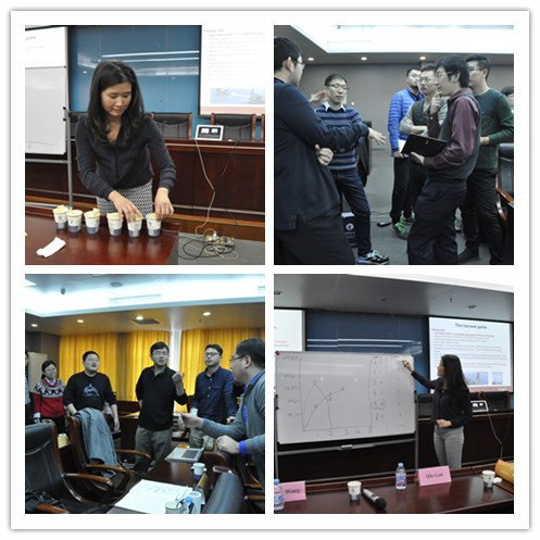 来自蒂尔堡大学的Chris de Neubourg教授和Qiqi Zhou助理教授首先用亚里士多德和达尔文的例子,生动的向学生展示了一个学术问题是如何随着时间的演变而变化。随后介绍了学术问题的提出与解决过程、学术论文写作的要素、研究报告的架构等。此外,二位教授还向同学们介绍了蒂尔堡大学图书馆资源的使用方法以及国外学术搜索引擎、文献整理软件的运用。Qiqi Zhou助理教授还组织学生参与了游戏The Harvest Game,游戏的目标是在不让资源枯竭的前提下达到资产最大化。同学们参与热情很高,经过几轮游戏,同学们掌握了其中的规律,并且能够用经济模型总结出来。