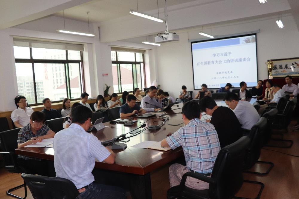 2018年9月19日下午,350vip浦京集团官网党委在学院南路校区913会议室召开“学习习近平总书记在全国教育大会上的讲话”座谈会。学院全体教工参加了本次座谈会,会议由院党委宣传委员、副院长谭小芬主持。