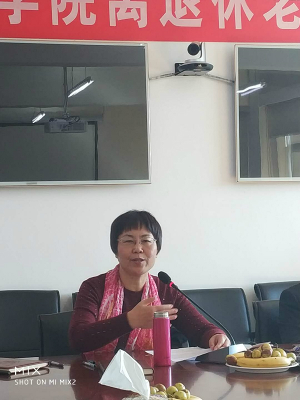 葛仁霞书记首先代表学院全体教职工向老干部们送上了节日的祝福,并向老干部们汇报了学院过去一年学科建设、教学科研、学生培养、70周年校庆等方面工作的进展,随后她结合学院的发展实际向老干部们征集意见建议,最后,代表学院向老领导、老干部们发出了美好的祝愿,祝愿大家身体健康、阖家欢乐!