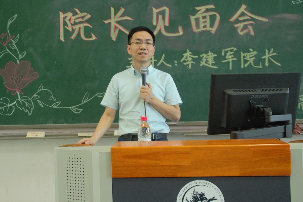 最后李建军院长对所有2018级新生提出了六点希望:一、志存高远,培育远大理想;二、崇尚科学,树立正确三观;三、践行校训,发扬中财精神;四、博览群书,习惯独立思考;五、精通外语,增强国际交流;六笃定修为,追求内在成长。