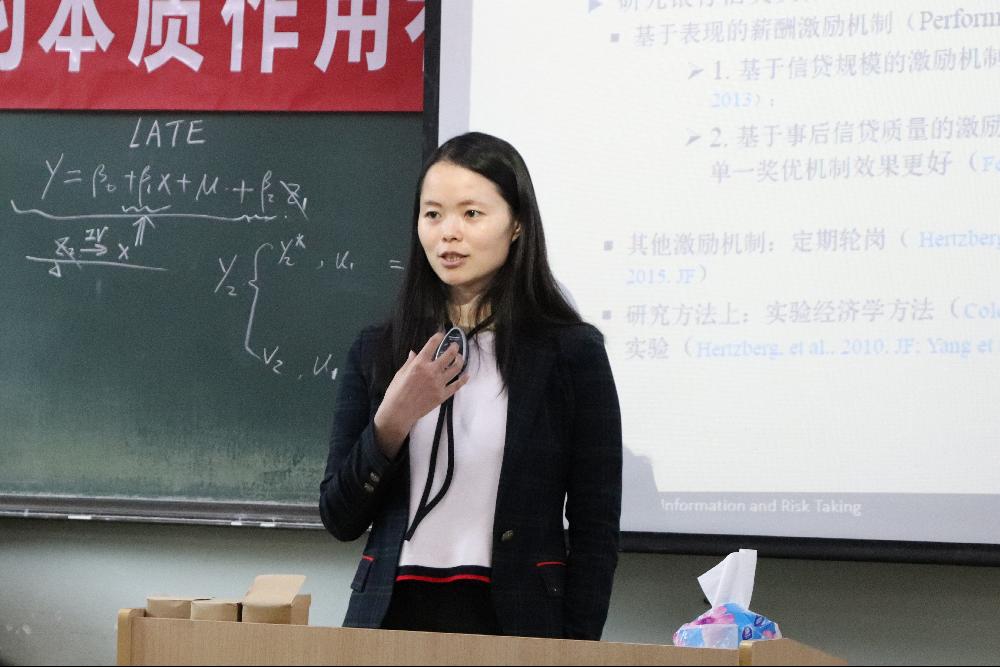 高昊宇助理教授以他的论文为例,讲解了法律环境对当地信贷市场风险的影响以及地方政府融资平台对不同银行的选择性违约的证据与原因。他认为信贷市场上存在策略性违约,即当贷款到期时,企业的现金足够支付贷款但仍然选择违约。而当地律师数量、法院数量、律所数量等因素能显著降低企业的策略性违约率;此外,那些融资成本更大的企业,法律环境因素对策略性违约率的影响越大。他还讲述了政府融资平台会根据未来的融资计划和政治考虑等动机选择更少违约国家开发银行的贷款。课程中,他详细地讲述了论文写作的流程以及各部分的具体做法和呈现方式。具体包括:论文的动机、文章的理论建模、假设的提出、基本回归分析、交互项回归分析、子样本回归分析以及稳健性检验的方法。师生进行了热烈的讨论,极大激发了同学们的学术热情。论文写作是博士学位要求的核心能力和重要学习内容,本次课程对同学们目前的学习和研究都具有很大的帮助。