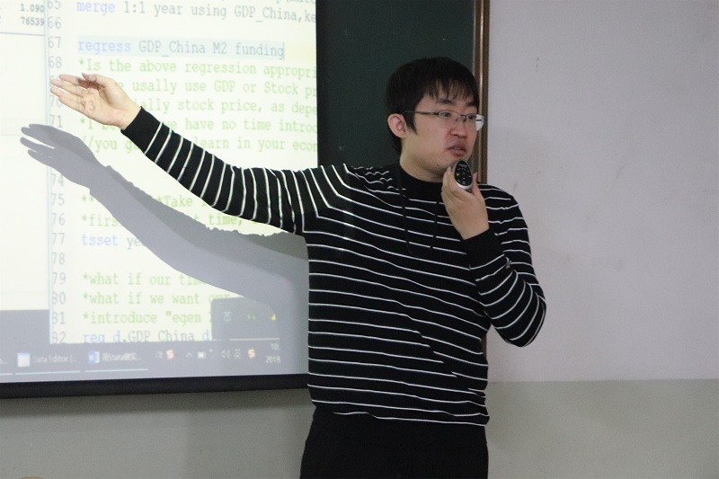 夏聪助理教授通过展示三个项目来介绍如何用Stata做实证分析。通过第一个项目,夏老师展示了如何用Stata导入数据、整理数据、合并数据、进行回归分析和输出回归结果。通过第二个项目,夏老师展示了如何用Stata编写循环语句、进行循环回归并提取回归数据、实现滚动窗口。通过第三个项目,夏老师讲授了处理内生性问题几种方法,包括工具变量法、双重差分法、倾向匹配法和断点回归法。夏老师的课程帮助同学们掌握了Stata的实际操作,为同学们之后开展实证研究打下了基础。