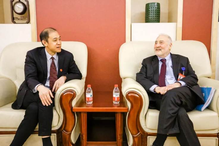 校党委书记何秀超在演讲开始前亲切会见斯蒂格利茨教授