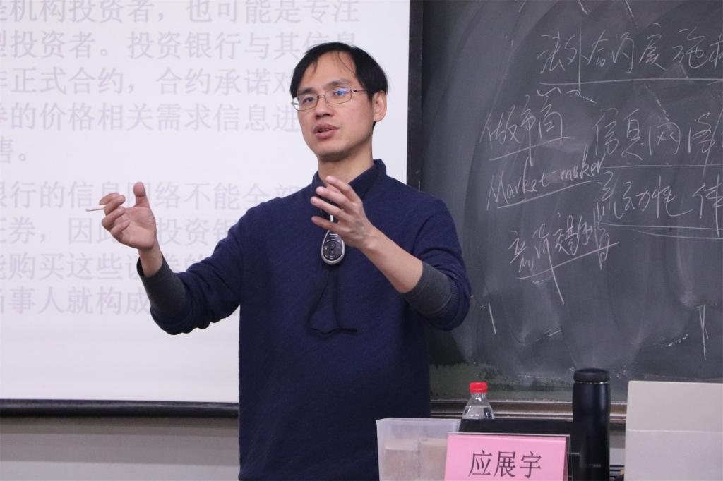 应展宇教授首先从金融中介的概念和分类入手,详细介绍了金融中介的经典理论和学术前沿,之后分别就金融契约理论、投资银行理论的演进、发展、意义等方面进行了更加细致和严谨的讲解,帮助同学们结合时代背景理解理论演进脉络和内在逻辑,并以美国为例,详细介绍了美国金融体系建立和成熟的过程和特点。最后回归中国现实,向同学们就中国金融中介体系进行了详实的分析和介绍,帮助同学们在具备初步理论基础之后,理解中国特色的金融体系演进逻辑,并列举了中国金融机构和体系面临的现实问题和挑战,引发同学们的思考和积极的讨论。