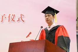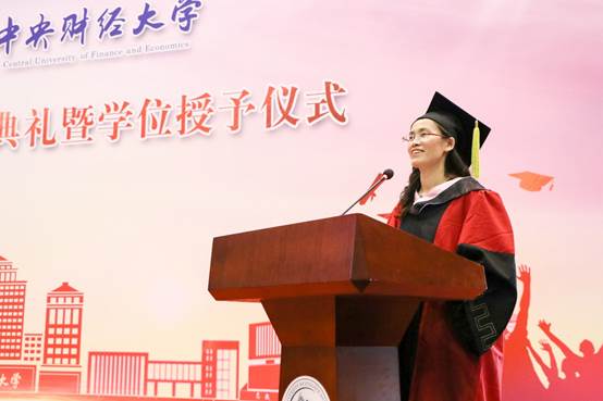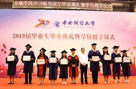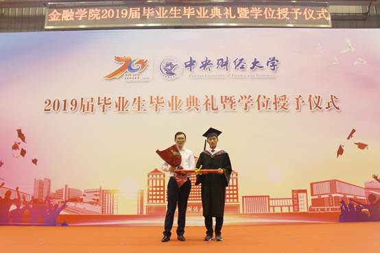 在毕业生代表发言环节,三位毕业生代表回忆了在学院度过的难忘岁月。2019届硕士毕业生代表袁晖回顾了自己在中财的八年经历,分享了她心中团结、有爱、争先的金院精神。2019届本科毕业生代表孟令超认为,中财大350vip浦京集团官网不仅培养了大家扎实的专业技能,也教会大家主动拥抱未来趋势,提出毕业生要牢记“忠诚、团结、求实、创新”的校训,为中华民族伟大复兴做出应有的贡献。2019届留学生毕业生代表特亚认为在中国学习的经历也教会了他许多宝贵的经验,向学校以及老师们表示衷心感谢,尤其感恩学校对留学生的人文关怀,让他在异国他乡有了家的感觉。