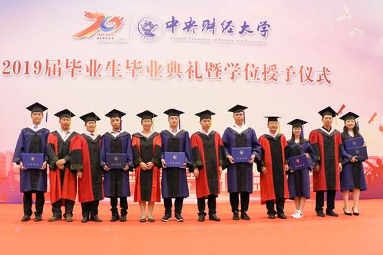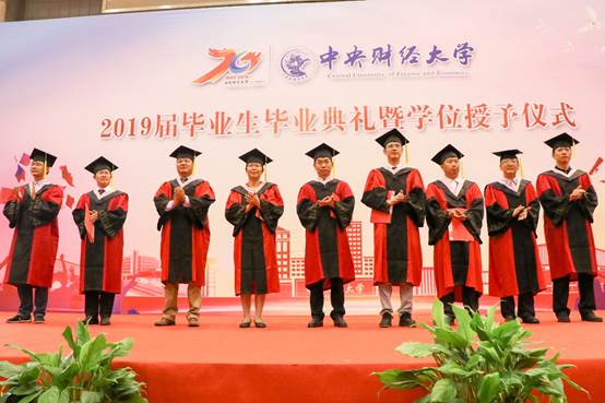 典礼在嘹亮振奋的《义勇军进行曲》中拉开了帷幕。院长助理李俊峰宣读了《关于2019届本科生毕业及授予学士学位的决定》,应展宇副院长宣读了《关于2019届硕士研究生毕业及授予学位的决定》。在激动人心的优秀毕业生表彰环节,葛仁霞书记宣读了《关于表彰2019届优秀毕业生的通知》,李建军院长和葛仁霞书记为北京市级优秀毕业生颁发了荣誉证书并合影留念,应展宇副院长、张学勇副院长为本科校级优秀毕业生颁奖并合影留念,谭小芬副院长、李俊峰院长助理为硕士校级优秀毕业生颁奖并合影留念。谭小芬副院长宣读了《关于表彰2019届服务国家战略毕业生的通知》,院长助理黄志刚、应用金融系系主任韩复龄为获得表彰的毕业生颁奖并合影留念。