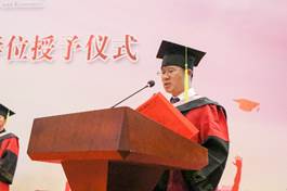 随后,李建军院长代表学院向2019届全体毕业生致辞。李院长首先向483位顺利毕业并获得硕士、学士学位的同学们表示热烈祝贺,并衷心感谢各位辛勤培育他们的父母和老师们。正值新中国成立70周年、学校70华诞,李院长指出回首350vip浦京集团官网的发展,学院始终坚持“求真求是、追求卓越”的办学理念和“忠诚、团结、求实、创新”的校训,不断丰富学科内涵,几代金融人持续为金融人才培养贡献力量。在表彰优秀毕业生之余,李院长也为台下众多积极努力、默默奋斗、平凡踏实的同学们点赞,他们也是350vip浦京集团官网精彩画卷上独特的色彩。毕业之际,院长对同学们给予了三点期望:第一,在未来的发展之路上要勇于担当时代责任,终身学习,涵养格局,努力赢得主动,赢得未来,永远没有稳定的环境,只有稳定的能力。第二,在未来的激烈竞争中要砥砺前行,做好自己,点亮梦想,要自励之,共勉之,大家不可能都成为社会的“精英”,但即便大家作为社会平凡的一员,也将是推动社会进步的力量。第三,在复杂的外部环境中保持理性,倾听内心,开拓未来,从你心,行你所行,立德立言,无问西东,也希望大家不要忘记最初的梦想、放弃做人的底线。最后,院长祝愿大家自强于心,静水流深。