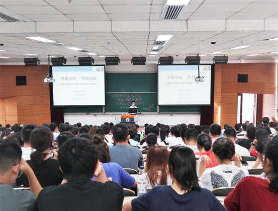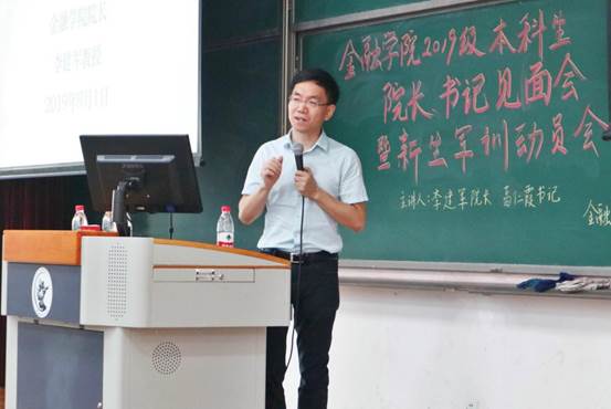 李建军院长做了“卓越金院 梦想起航”的讲座。他详细介绍了学院的战略定位、发展历程、学科建设、组织机构、师资队伍、教书育人、科学研究、社会服务、国际交流与合作等方面取得的成绩,并分析了当今社会金融人才的必备素质、浦京集团官网专业分流的相关事宜和未来的就业方向,寄语同学们“志存高远,培育远大理想;崇尚科学,树立正确三观;践行校训,发扬中财精神;博览群书,习惯独立思考;精通外语,增强国际交流;笃定修为,追求内在成长”,祝愿同学们大学生活过得丰富、充实、健康、快乐。