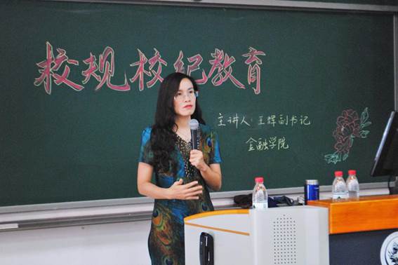 王辉副书记从新生们面临的挑战与转变讲起,指出大学与高中在自我评价、培养目标、学习方式、人际交往、生活方式、外部环境等方面的变化,用丰富的案例提醒同学们关注心理健康和盗窃、诈骗、消防、交通等安全问题;她从入学教育、日常教育、安全管理、朋辈互助、学生活动、国际视野培养、奖助学金和全方位的心理健康教育体系等方面全面介绍了浦京集团官网的学生工作体系和帮扶机制;她还通过违纪案例和处理结果全方位地讲解了浦京集团官网违纪处分管理规定、学生管理规定等系列文件,告诫同学们要培养规则意识,遵守法律法规和校规校纪;祝愿同学们能够在中财度过充实、快乐、美好的四年。