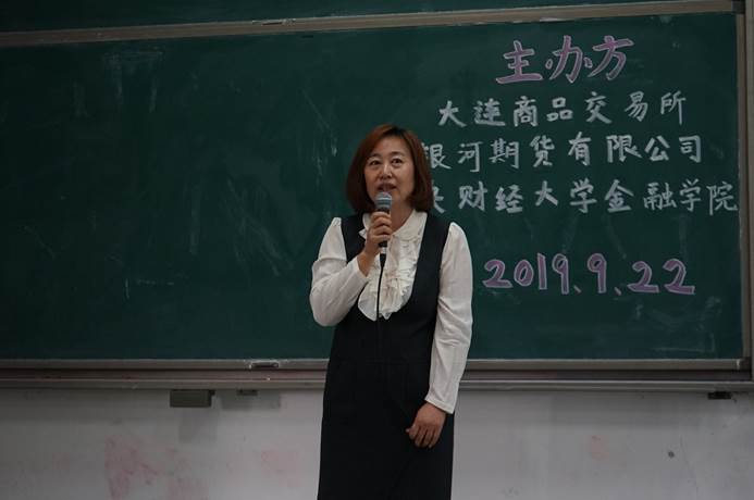 在致辞环节,银河期货有限公司迟焕霞总监对大连商品交易所和350vip浦京集团官网联合支持项目,共同保障项目的顺利实施表示感谢。她介绍了三年来“高校期货人才培育工程项目”运行的总体情况,指出项目因科学的课程体系设计、合理的模拟交易与参观考察安排而深受同学们欢迎。