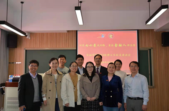 随后,在1962级金融学1班、1964级金融学2班、1965级金融学3班、2005级金融学1班、2005级金融工程班、2007级金融学2班、2013级博士班等班级的校友座谈会上,学院领导班子与左毓秀、李俊峰、黄志刚、戴韡、苟琴、罗卓笔、王志梅、赵学辉、姬丽丽、张莹、史世博等教师代表对校友们拨冗返校表示热烈的欢迎并与校友们一同回顾了学院的发展历程。发言中,校友们建议:学院在育人方面应理论联系实际,理论教育不可过多滞后现实;金融学科建设要提高对学生的计量性要求,增强学生在数学计算、论文写作、程序设计上的能力;毕业生要坚持求真务实的优良传统,在工作中兢兢业业;学生要将自己培养成复合型、实战型人才,将中财“忠诚、团结、求实、创新”的校训内涵深植于心,在磨砺中鼓舞自己,在挑战中鞭策自己。