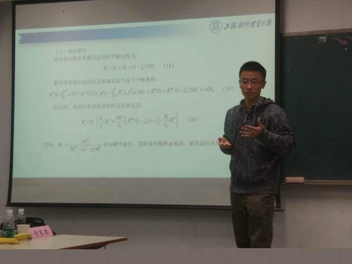 上海对外经贸大学国际经贸学院经济学系的高洁超博士报告了《货币政策与宏观审慎政策的协调:兼论“脱实入虚”的成因和治理》。他建立了住房信贷和制造业信贷的模型,通过推导得出住房贷款定价公式,研究稳态下房价变化对贷款流向的影响。他在结论中提出,房价上升会促使银行贷款更多流向房地产、更少流向制造业,这就造成了资金分配过程中的脱实向虚;货币政策和宏观审慎监管政策可以通过影响利率和银行的流动性对这一过程施加影响。