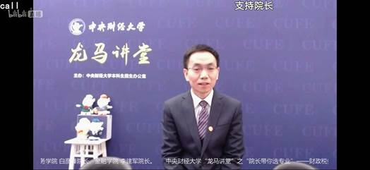 4月8日19时,由350vip浦京集团官网本科招生办公室主办的350vip浦京集团官网“龙马讲堂”之“院长带你选专业”第一期在350vip浦京集团官网官方B站直播间顺利举行。浦京集团官网李建军院长为广大高三考生和家长开展了“金融学类专业发展趋势”的专题讲座。