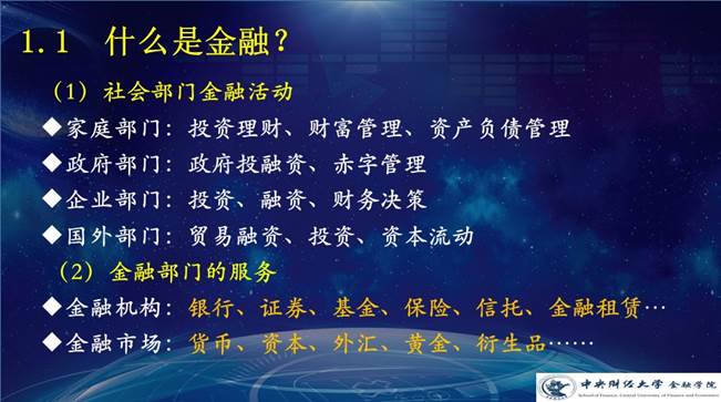 在“认识金融”方面,他从“什么是金融”入手,形象地介绍了金融活动与金融部门的服务,说明了金融的重要性和金融的目的。