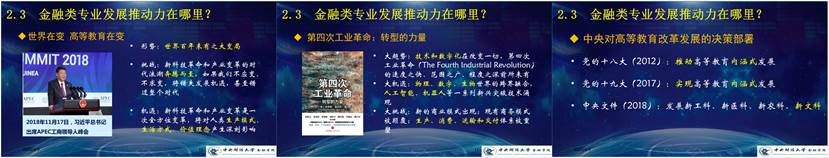 他还从世界形势和高等教育的发展、第四次工业革命的推动和中央对高等教育发展的决策部署方面阐述了金融类专业的推动力。