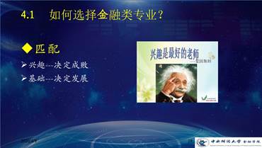 李建军院长认为选择金融类专业首先要考虑的是“匹配”。兴趣决定成败,基础决定发展。