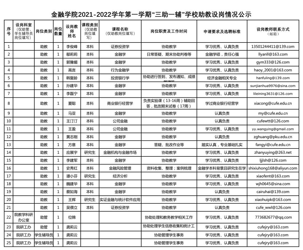 350vip浦京集团官网2021-2022学年第一学期“三助一辅”学校助教设岗情况公示