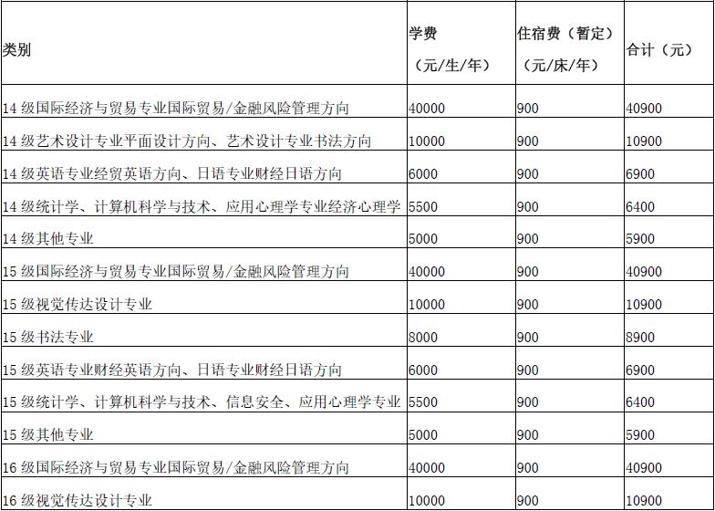 注:学生个人的住宿费标准根据学生实际住宿情况收取,其中沙河校区均为900元/床/年,学院南路校区的学1#-4#楼均为750元/床/年,学5#和学6#楼为900元/床/年,单元楼为1200元/床/年。