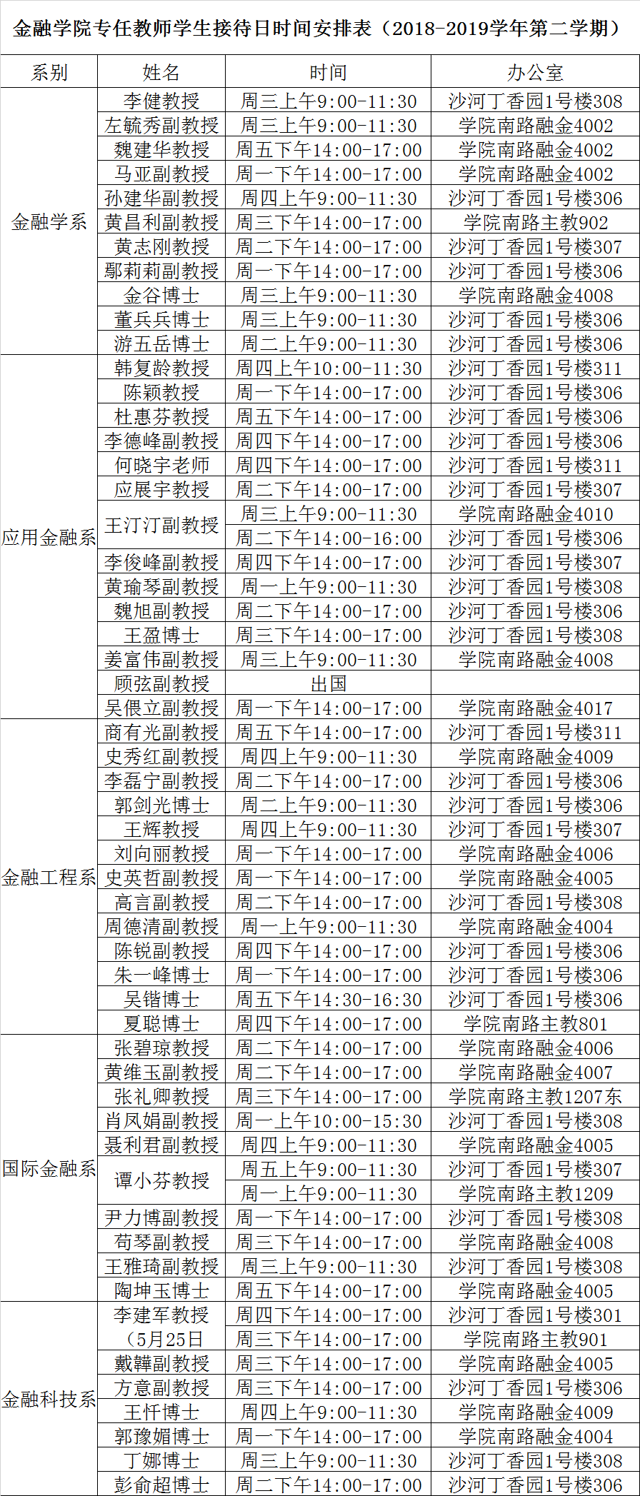 350vip浦京集团官网专任教师学生接待日时间安排表(2018-2019学年第二学期)