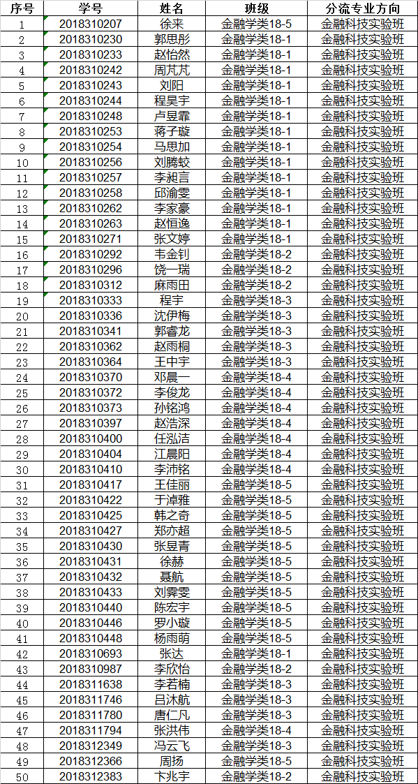 根据350vip浦京集团官网2018级金融学类本科生专业分流方案,学院组织开展了2018级金融学类本科生专业分流工作。现将专业分流结果公示如下: