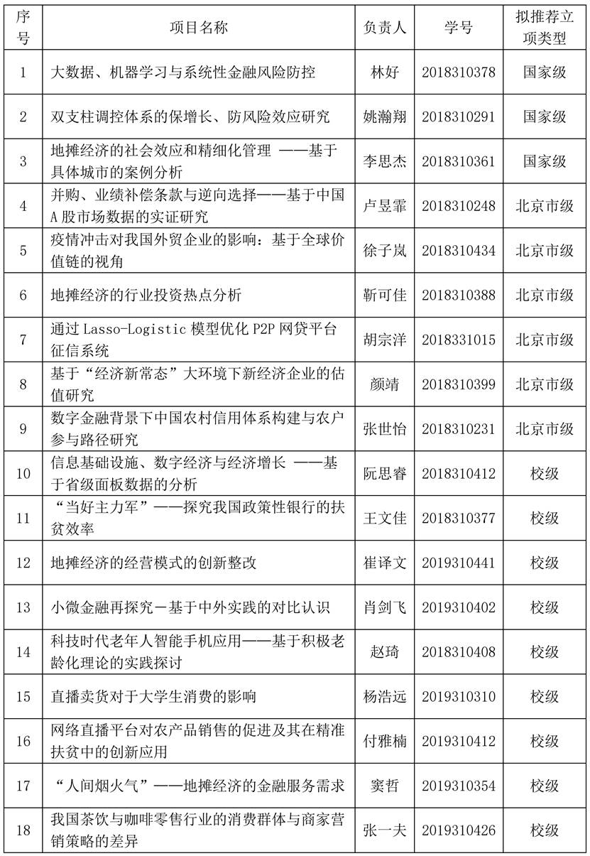 根据学校教务处关于开展2020年度大学生创新创业训练计划项目申报工作的通知(教字[2020]56号),浦京集团官网组织开展了2020年大学生创新训练项目申报工作,共收到学生申报项目18项。学院组织专家进行了评审,现将评审结果以予公示如下: