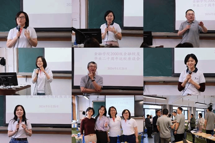 座谈会期间,校友代表依次发言,分享了他们在各自领域的经历和感悟。吴淑明校友对学院对本次座谈会的大力支持和筹备组的辛勤付出表示了由衷的感谢,并深情回顾了在母校的美好时光。刘葳校友动情地回忆了在校期间的点滴,表达了对母校和师生的深厚感情。她认为,母校不仅教给大家专业知识,更教会了学生如何做人、如何面对生活中的挑战。赵根牛校友建议学院能够提供商业银行风险管理实践的继续教育课程,以满足他们在职业发展中的需求。律宇校友认为,中财大精神已经融入了校友们的工作和生活,校友们期待能够为母校的发展贡献力量。董森校友强调了校友间的团结和互助的力量,表示愿意积极参与学院的各项活动,共同推动学院的发展。梁洁和黄璟校友表示,希望全体校友健康幸福,共同珍惜宝贵的大学情谊。