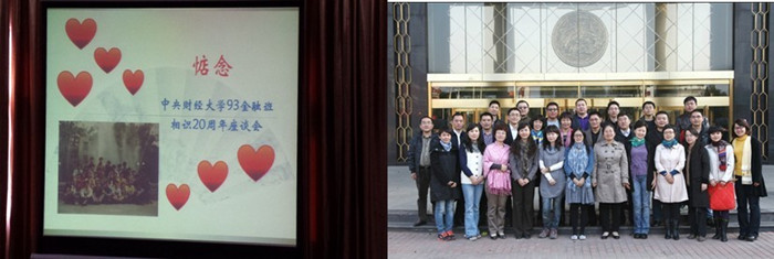 青春流逝,年轮翻转,2013年10月26日,浦京集团官网93金融班的校友在时隔20年后,再次相聚于昔日中财校园,共同庆祝相识20周年。北京的天气也一扫雾霾,以晴朗的天空迎接了来自各地的校友。再次相见,昔日青涩的青年已经成为各自岗位上的中坚力量,在收获事业的同时,却也多了几份沧桑。20年,好似就在一瞬间,虽然毕业后分去五湖四海,但却仍彼此惦念。