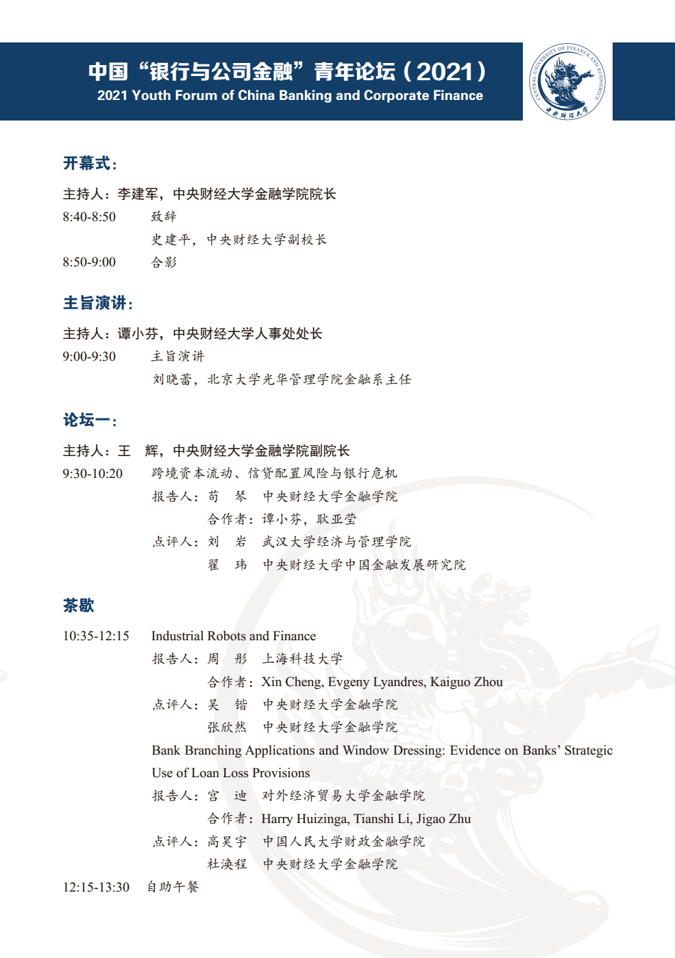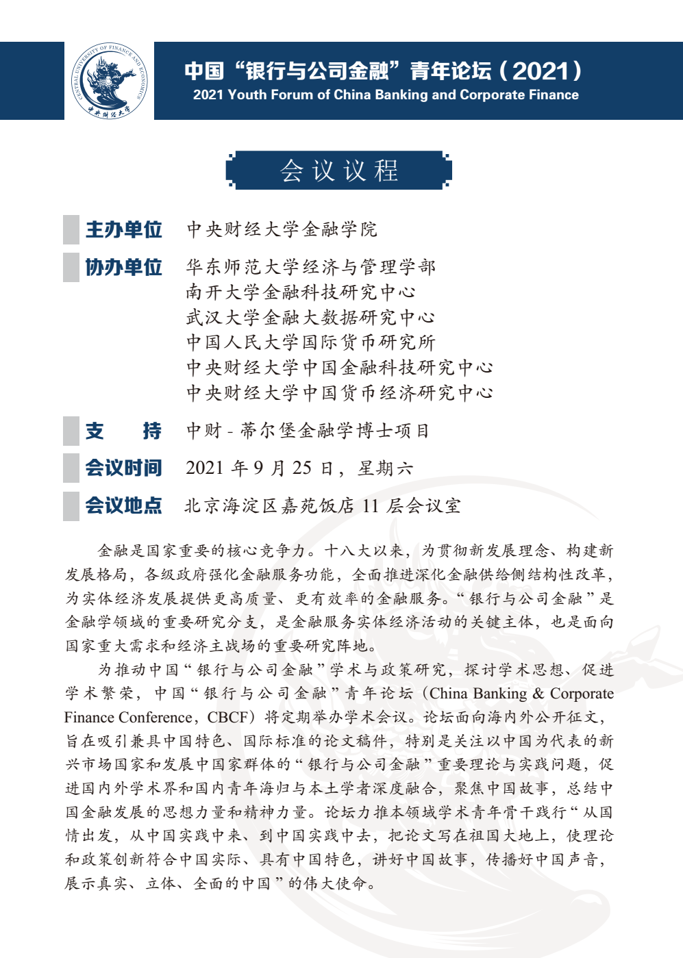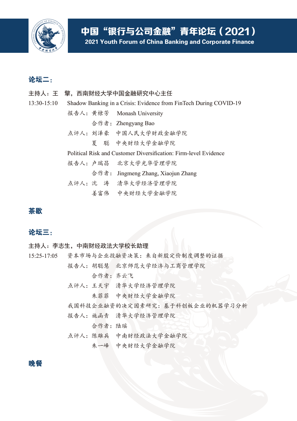 中国“银行与公司金融”青年论坛(2021)