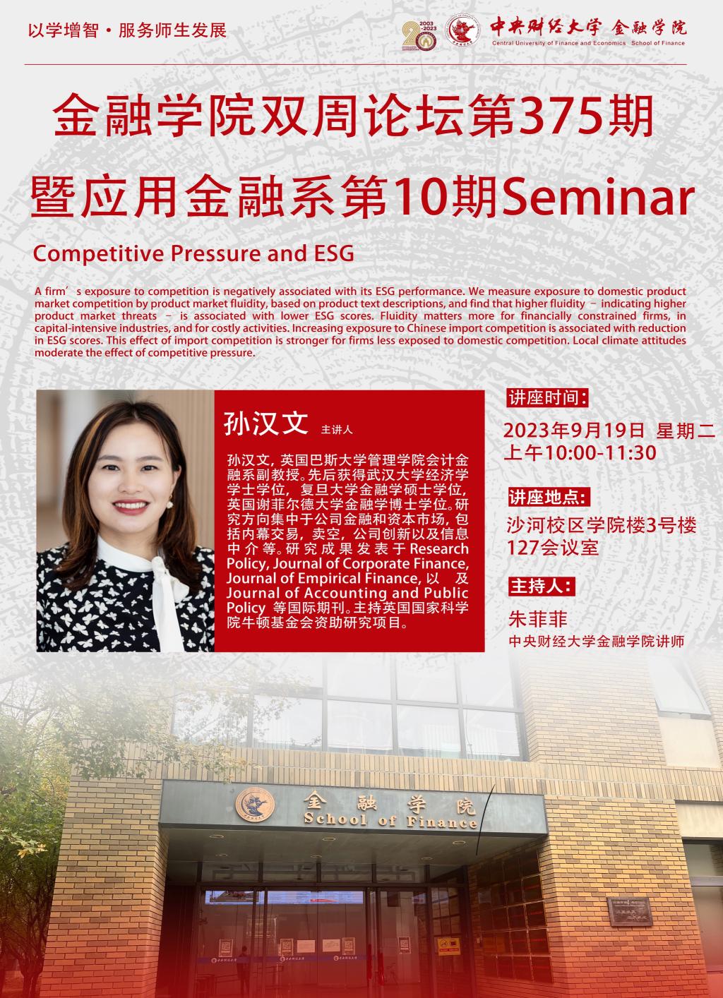 孙汉文 | 350vip浦京集团官网双周论坛第375期暨应用金融系第10期Seminar