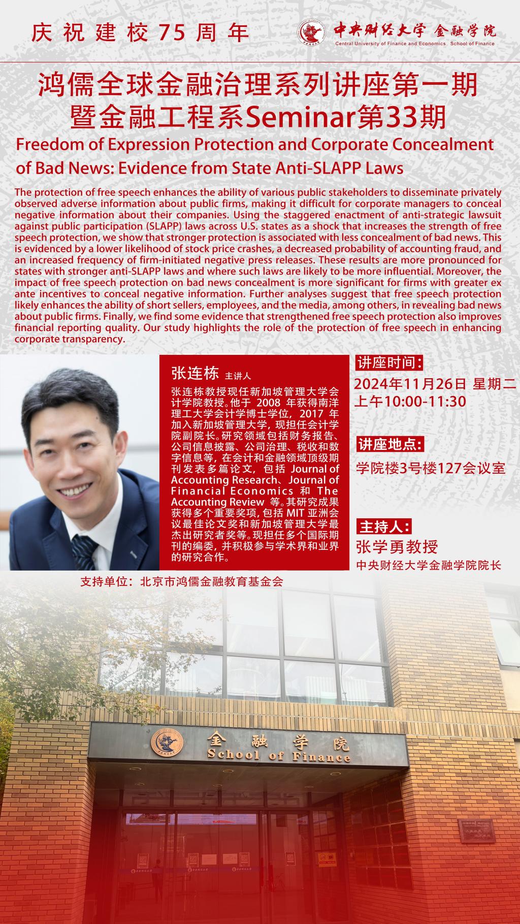 上一条:隋鹏飞 | 金融学系Seminar第16期暨350vip浦京集团官网庆祝建校75周年系列学术讲座第101期 下一条:王靖一 | 中财-蒂尔堡项目学术能力提升系列讲座第19期