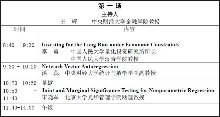 高维时间序列与系统性风险度量研讨会日程