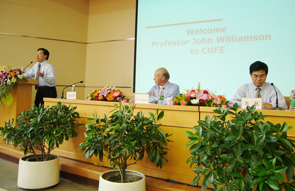 2007年9月18日下午2:30,应浦京集团官网和国际金融研究中心之邀,世界著名的国际经济学家、对世界形势产生深刻影响的“华盛顿共识”理论创始人、“汇率目标区”理论创始人、彼得森研究院资深研究员约翰·威廉姆森(John Williamson)教授来浦京集团官网作学术演讲,演讲主题为“从历史角度审视全球不平衡现象(Global Imbalances in Historical Perspective )”。 此次学术演讲是350vip浦京集团官网“经济与金融学名家论坛”第十六期,由350vip浦京集团官网院长、350vip浦京集团官网国际金融研究中心主任张礼卿教授主持,清华 - 布鲁金斯研究中心主任、布鲁金斯学会资深研究员肖耿博士担任评论嘉宾,浦京集团官网近四百名师生踊跃参加。