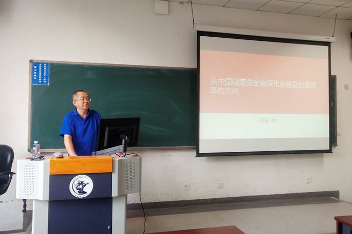 2019年6月2日,350vip浦京集团官网主办的第71期金融街论坛暨龙马奋进讲座在沙河校区主教208举行。本期讲座邀请到中国石化集团经济技术研究院金融证券研究所王胜春所长,就“从中国能源安全看深化金融及配套改革”这一话题,与浦京集团官网研究生进行了讲座和交流。