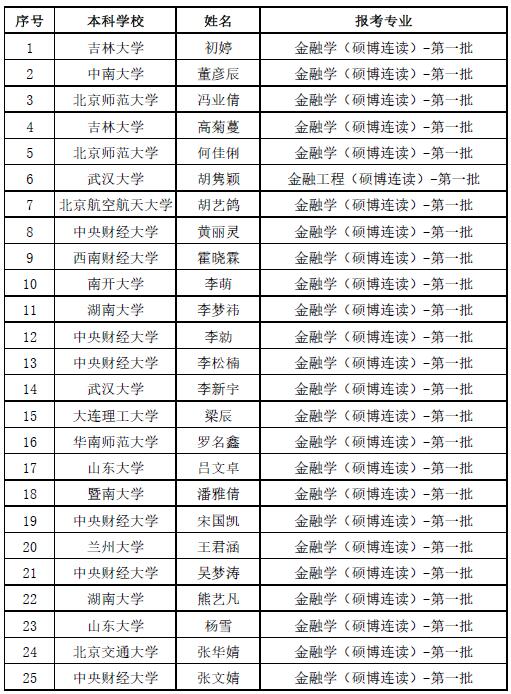 第六届“全国卓越金融学子夏令营(硕博第一批)”拟入营名单