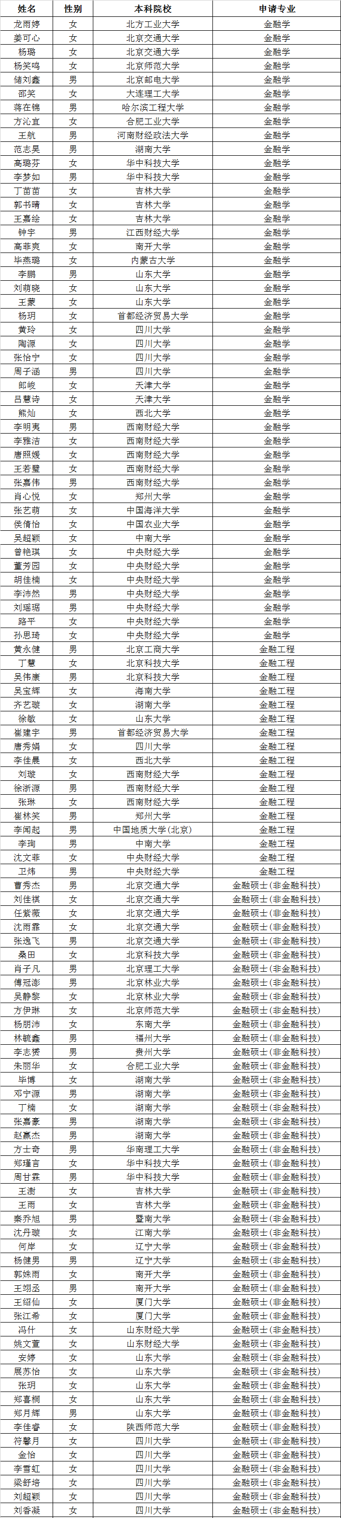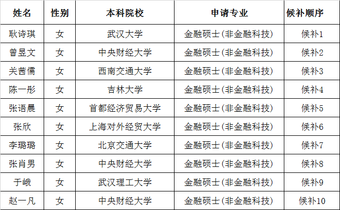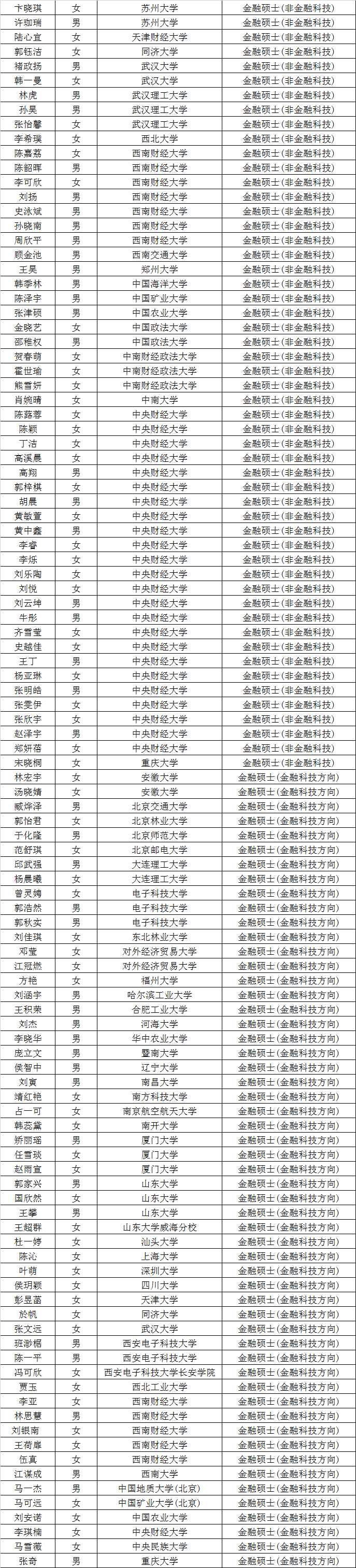 第八届“全国卓越金融学子夏令营”拟入营名单