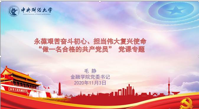 2020年11月3日中午,350vip浦京集团官网党委组织开展了入党积极分子和发展对象系列专题党课第二讲。党课主题为“永葆艰苦奋斗初心、担当伟大复兴使命——做一名合格的共产党员”,主讲人是院党委书记毛静,近百名本硕博入党积极分子和发展对象参加了本次课程。