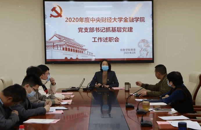 学院党委委员分别对党支部书记现场述职情况进行了点评。党委委员、李建军院长认为,金融学系教工党支部建设卓有成效,希望支部结合党员特点规范支部建设,发挥党员先锋模范作用,完成学校首批样板党支部的中期检查及党史教育工作。党委书记毛静认为,国际金融系教工党支部按照“七个有力”要求,推进“三优计划”,顺利通过首批全国党建工作样板支部验收,全面落实三全育人,希望接下来能够发挥榜样引领作用,带动学院其他支部共同进步。党委委员、副院长王辉认为,金融科技系教工党支部工作规范,将学术研究与中国特色相结合,很好地完成了科研与教学工作,希望支部开展更多以金融科技为主题的党建活动,进一步发挥先锋模范作用。党委副书记李俊峰认为,博士生第二党支部在疫情期间实现了党建工作内容和方向的创新,坚持将思政融入科研,接下来应紧跟形势,继续加强思想政治理论学习。党委委员、组织员张晓红认为,2019级金融学硕党支部走出了互联网+的党建新模式,值得各支部学习,希望接下来能够加强理论学习、注重党支部下的班团一体化建设,并做好换届期间的衔接工作。张晓红还指出,本科生第一党支部通过党支部工作带动班团一体化建设,充分发挥党支部战斗堡垒作用,着力加强党支部对班级团支部的政治引领作用,取得了显著成果,但还应继续加强理论学习,进一步开展党史教育。党委委员王汀汀认为,2019级沙河校区金融专硕党支部积极应对新冠肺炎疫情带来的挑战,很好地完成各项工作和活动,希望能够创新学生党支部党建工作形式,完善支部建设理念,以党建带科研、以科研促党建。