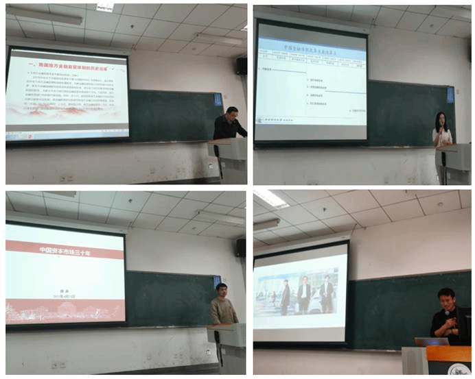 第二个环节,李明洲同志精彩的主题宣讲结束后,支部的四名党员从多方面对改革开放期间金融系统的变革与发展进行了专题介绍。首先,孙光宇同志介绍了我国地方金融体制的历史发展,并以山东省为例,讲述了我国地方金融监管体制改革的实践成果。随后,朱晓野同志从银行体制改革、金融市场改革两个角度,介绍了中国金融体制改革的成绩、特点、存在问题以及未来展望。紧接着,魏鑫同志围绕中国资本市场,回顾了1990年股票市场建立以来的发展和改革历程。最后,辛宇同志分享了他在观看《大江大河》电视剧后的感想,表达了对我党四十年改革开放所获得成就的欣喜和自豪,作为新时代的青年人一定要向吾辈学习,恰乘其势,才不负伟大时代。