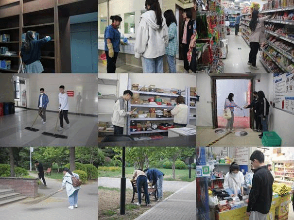 第三环节,学员跟随基层工作人员,走进不同岗位,开展劳动实践,如校园道路清扫、校内长椅保洁、图书馆书架保洁等。在参与实践的过程中,学员们切实体会到物业基层工作人员的艰辛与不易,也纷纷表示希望能够尽自己的一份力量服务人民、服务社会。