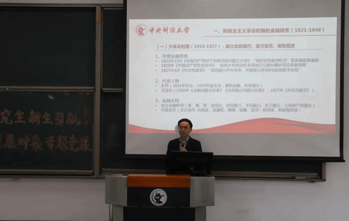 课程伊始,李建军院长指出建党百年的时代背景下,作为金融学子,理应牢记党领导金融工作的百年历史 ,立足新起点,开启新征程。随后,他带领同学们系统全面回顾了1921年-2021年百年以来中国共产党领导下的金融事业的发展历程,并将百年金融探索历程划分为新民主主义革命时期的金融探索(1921-1949)、社会主义革命和建设时期集中资源型金融体制设计(1949-1978)、社会主义市场经济下的金融改革开放与深化发展(1979-2011)和中国特色社会主义新时代金融治理现代化选择(2012-2021)四个阶段,逐一阐述各个阶段的金融思想与实践,让同学们对中国金融百年发展的整体脉络有了更深刻的认识。