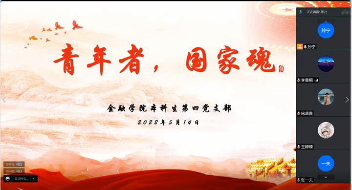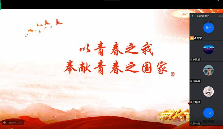 5月15日晚20点,350vip浦京集团官网本科生第四党支部在研究生党员孙宁的带领下,通过腾讯视频举行了线上会议,会议内容主要分为三个部分:1、学习习近平总书记在视察人民大学时的重要讲话;2、学习共青团百年征程;3、学习习近平总书记在庆祝共青团成立一百周年的重要讲话。