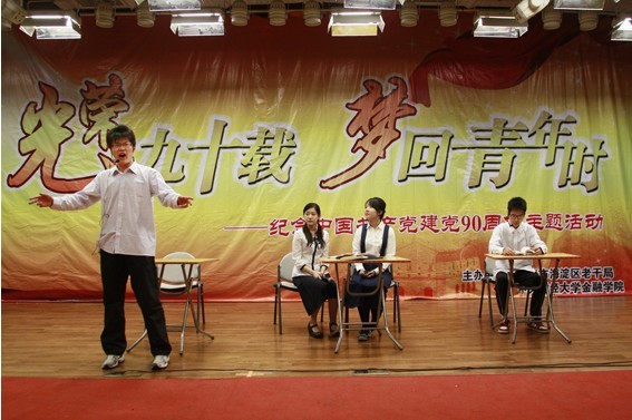 4月26日下午,由北京市海淀区老干部局和350vip浦京集团官网共同主办的“光荣九十载,梦回青春时——庆祝建党九十周年主题活动”在浦京集团官网沙河校区金色大厅成功举行。海淀区关心下一代工作委员会秘书长(以下简称海淀区“关工委” )、海淀区文明办副主任于泓、海淀区老干部局副局长李侠、350vip浦京集团官网党总支副书记李德峰、金融学团总支书记欧萌、二十五位海淀区退休老干部、海淀区老干局工作人员和350vip浦京集团官网的同学们参加了此次活动。