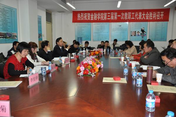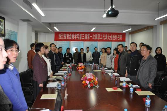 大会在庄严的国歌声中开始,校党委副书记、教代会执委会主任、工会主席袁东对350vip浦京集团官网第三届第一次教职工代表大会的顺利召开表示祝贺,他指出,学校各级教代会在学校、学院发展中正发挥着日益重要的作用,教代会制度是充分发挥广大教职工积极参与学校、学院重大事项民主决策的制度保障;金融学科是国家重点学科,希望350vip浦京集团官网教代会在学院创新人才培养等各方面工作中继续发挥重要作用。