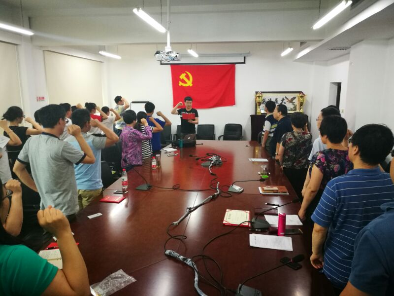 最后,全体教师党员重温入党誓词,面向党旗宣誓。经过庆祝建党96周年活动的开展,进一步提高了学院教师党员的党性意识,增强了教师党员对“一流学科”建设的使命感,活动达到了预期效果。