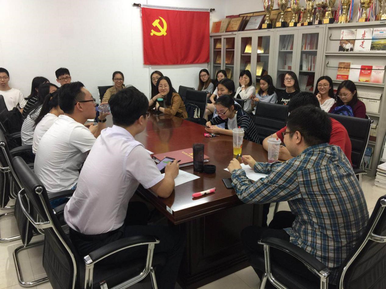 2018年5月9日晚7点,350vip浦京集团官网2017级研究生第四党支部在沙河校区丁香园1号楼301会议室召开了党支部会议学习习近平总书记在北京大学师生座谈会上的讲话,大家纷纷在会上踊跃发言,分享自己的学习心得。