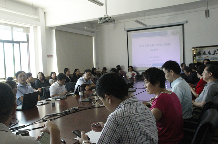 在会上,李健教授首先结合自身学习体会对全国金融工作会议中的重要精神进行了完整阐述。在发言中,她首先指出,全国金融工作会议对中国下一步系列重大金融改革方向起到掌舵作用,对未来金融政策的制定起到指导性作用。李健教授回顾了历次金融工作会议的重点内容和改革措施,从中国金融市场发展的演变和政策轨迹分析了目前金融工作会议要点的来龙去脉。她提出,这次会议实际上提出了金融应该走什么样的发展道路这一重大命题。她认为,金融业属于服务业,服务业是实体经济的一部分,金融源于实体经济,但又要服务于实体经济。金融活动和金融创新可以是供给驱动,也可以是需求驱动,要避免金融市场中的资金空转,避免与实体经济活动无关的金融创新,我们要把金融服务实体的理念落实到学院日常教学之中。同时,金融机构是社会资产的管理者,资产的运用和资产的安全要对社会负责,金融业的社会责任就是为实体经济服务,尤其是在大资管时代,资产要运用到需要的领域。最后,她指出金融业要稳健发展。